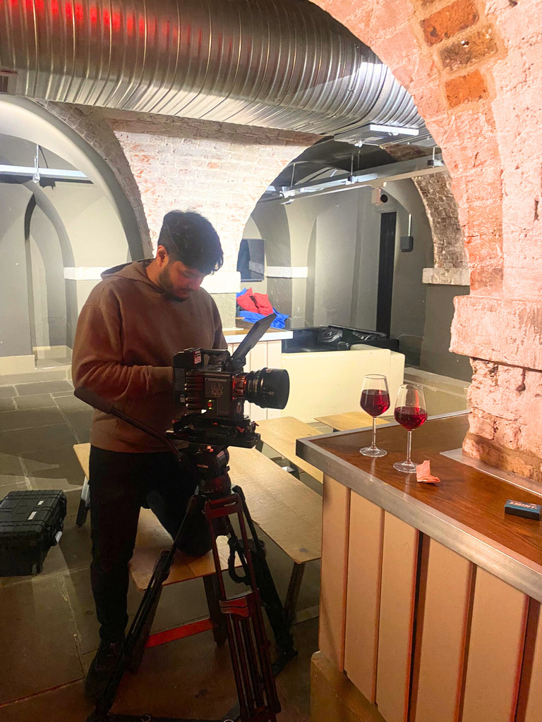 After reviewing our first draft of the film, we received a suggestion to add a shot that would significantly enhance the storytelling. Just a few days before our submission deadline, I booked the camera and lens again to film a crucial scene showing someone putting white powder (poison) into a glass of wine. We returned to the original location and quickly recreated the scene with a red light in the background. This addition seamlessly matched the tone and aesthetic of the other scenes, enhancing the overall narrative effectively. Here are some behind the scene from that day.